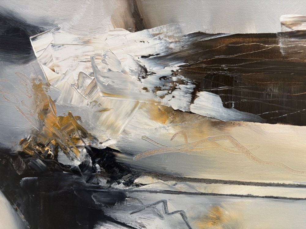 “The Quiet Shift” captures the delicate moment between autumn and winter—a space where warmth lingers even as the first cool breath settles in. Layered textures create a sense of gentle transition, while deep brown and warm golds emerge against soft, muted tones. The composition evokes both movement and stillness, echoing the natural rhythm of change. This abstract piece invites viewers to pause within that fleeting, quiet threshold where one season releases its hold and another begins.