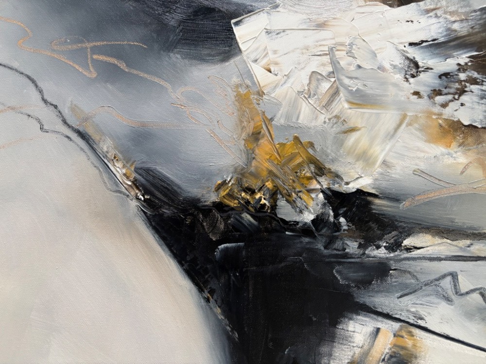 “The Quiet Shift” captures the delicate moment between autumn and winter—a space where warmth lingers even as the first cool breath settles in. Layered textures create a sense of gentle transition, while deep brown and warm golds emerge against soft, muted tones. The composition evokes both movement and stillness, echoing the natural rhythm of change. This abstract piece invites viewers to pause within that fleeting, quiet threshold where one season releases its hold and another begins.